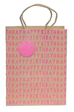 Glitter Gift Bag Neon Kraft Birthday Neon Pink Large (unit of 6)