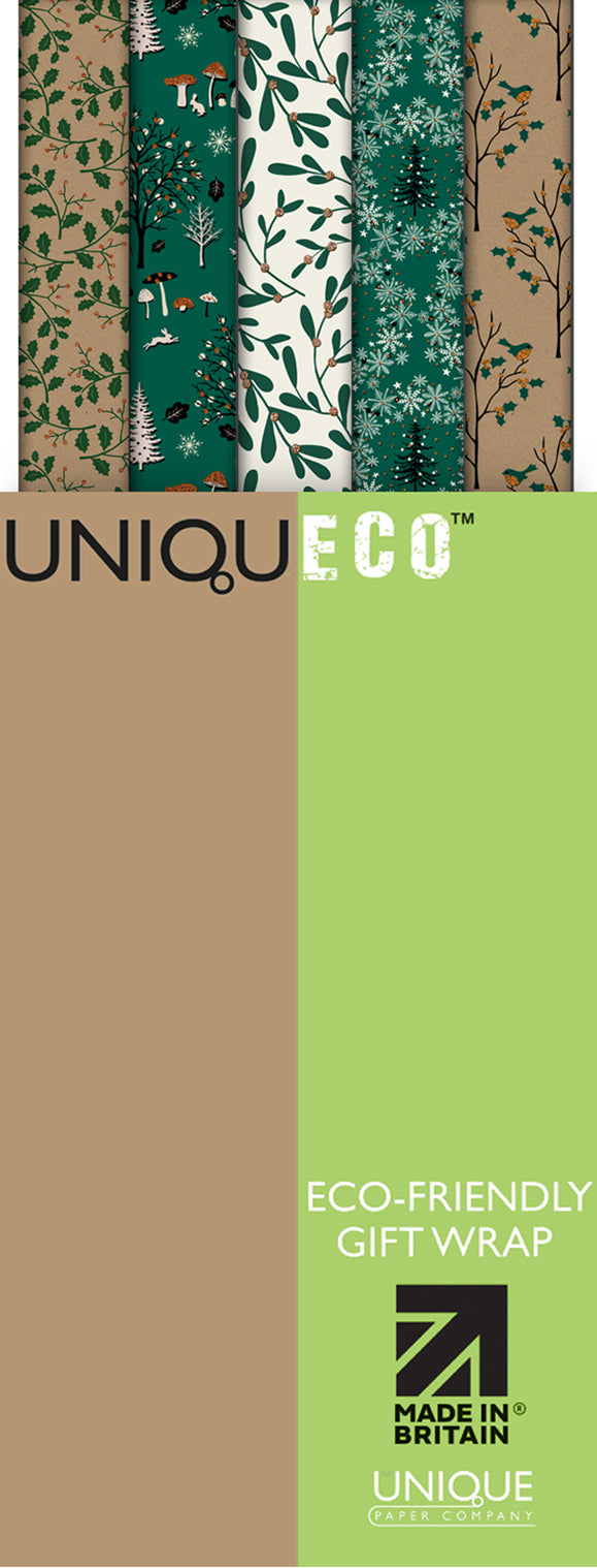 Uniqueco Bioglitter™ Recycled FSC™ Kraft Winter Woodland eco-friendly rollwrap assortment of 42 Rolls